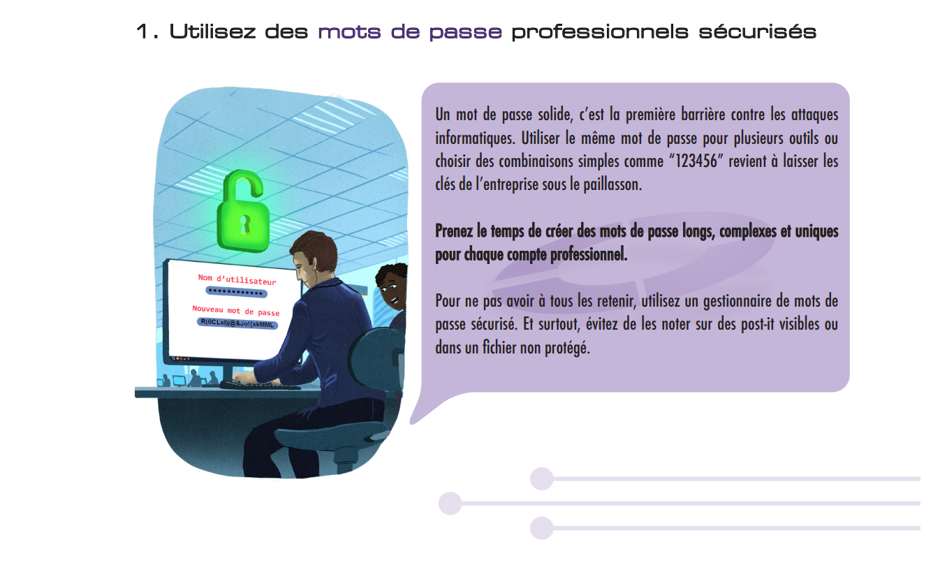 Informer, prévenir les risques informatiques et renforcer la crédibilité de l’entreprise auprès de ses clients grâce à un support de communication clair et professionnel.